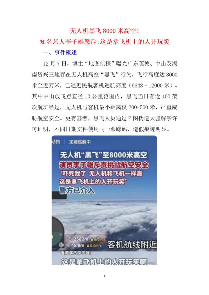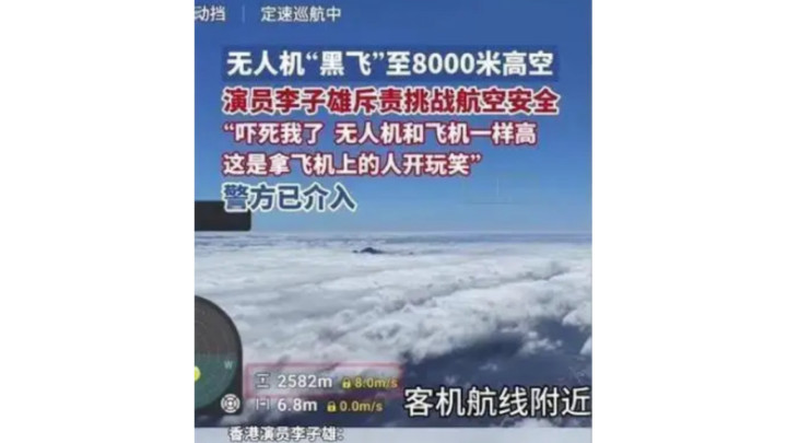 无人机黑飞8000米高空!知名艺人李子雄怒斥:这是拿飞机上的人开玩笑